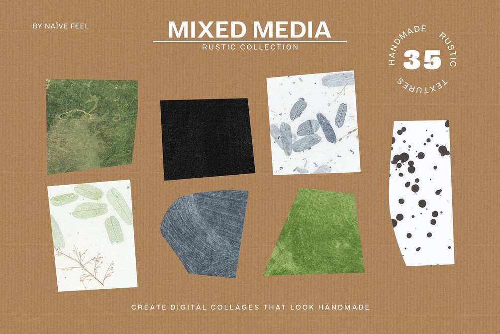 35 Handmade Mixed Media Textures, A3 size, 300 DPI.